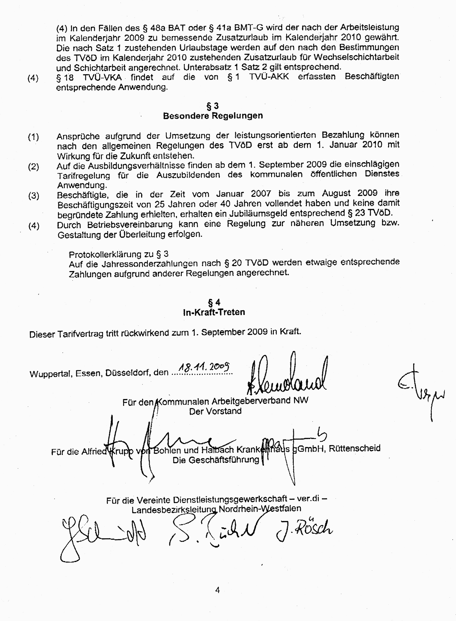 TVÜ-AKK - dem Tarifvertrag zur Überleitung in den TVöD im Alfried Krupp Krankenhaus (Essen Rüttenscheid) . Hier, zur Vorlage vor dem Arbeitsgericht, die Kopie der Unterschiften unter dem Tarifvertrag.
